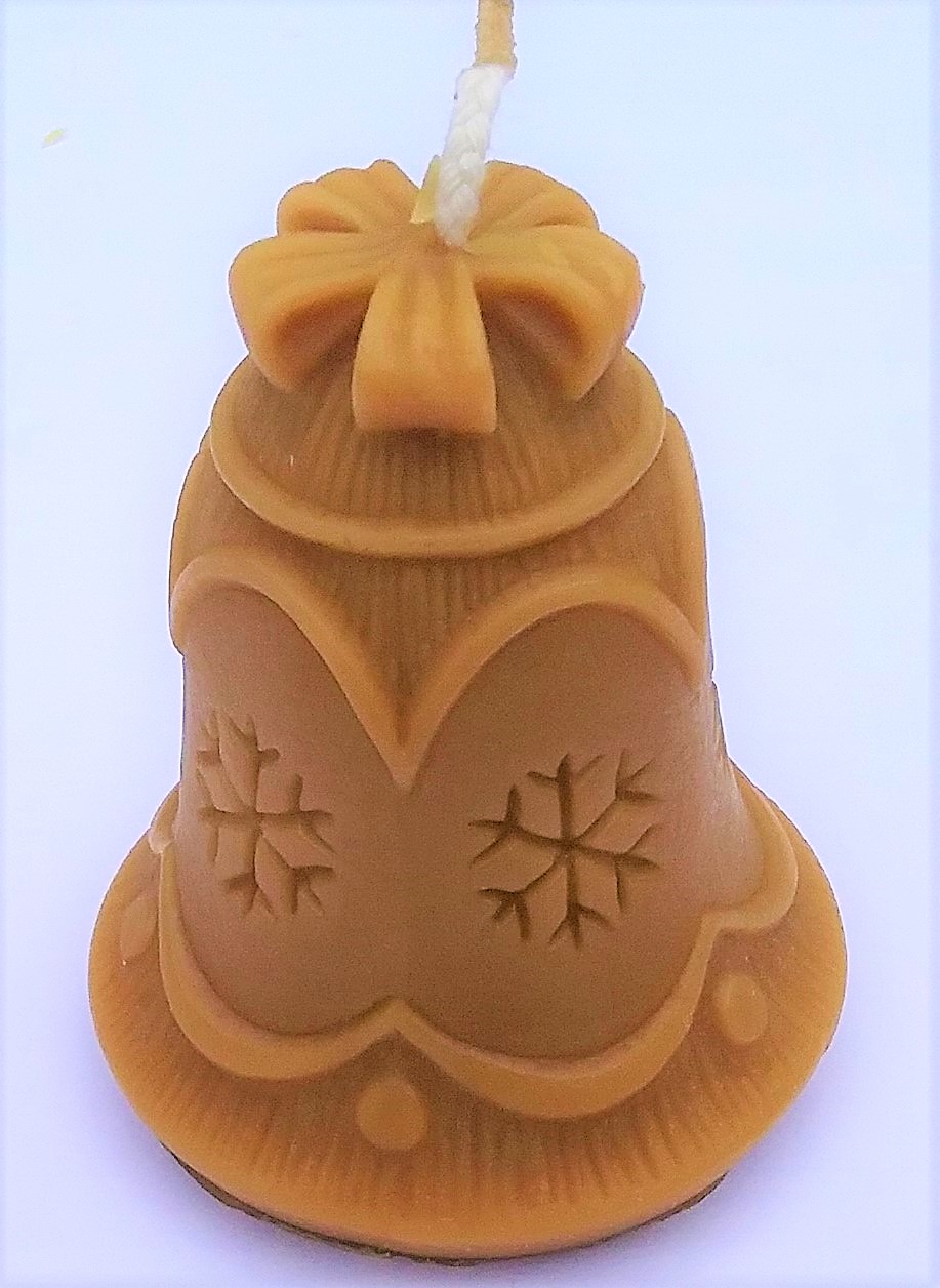 Campana de navidad, vela de cera de abejas y diferentes colores. la mecha puede venir para vela o para colgarlo.